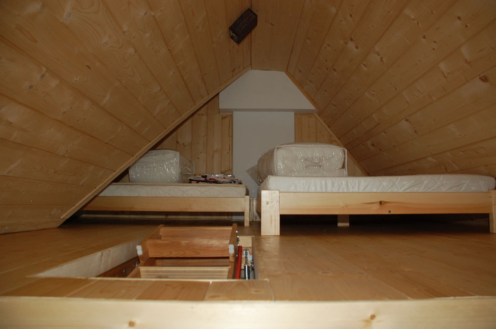 - na antresoli jedno podwójne łóżko i jedno pojedyncze.